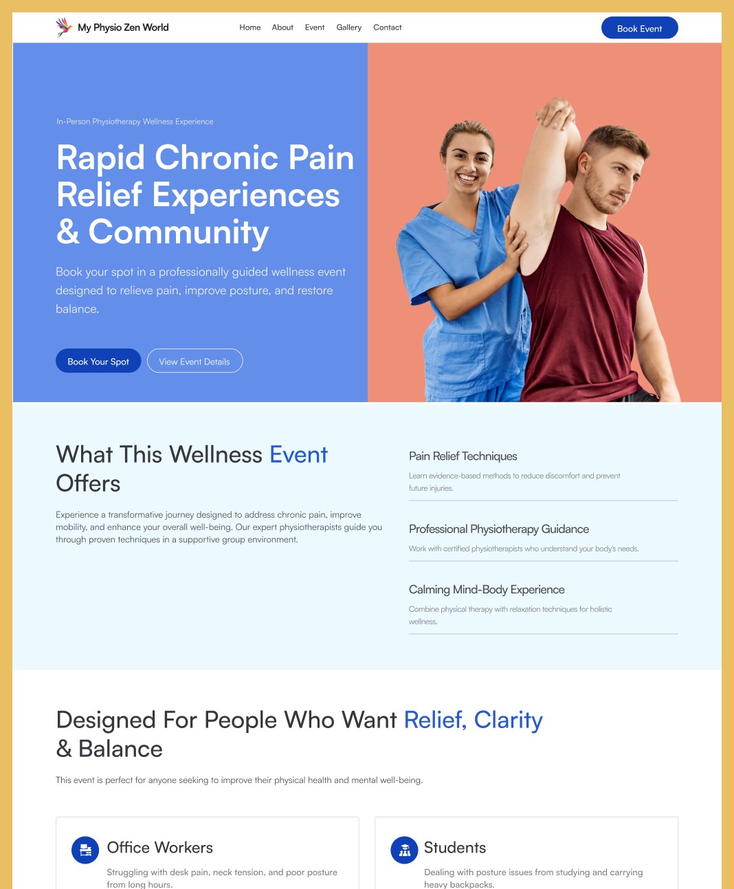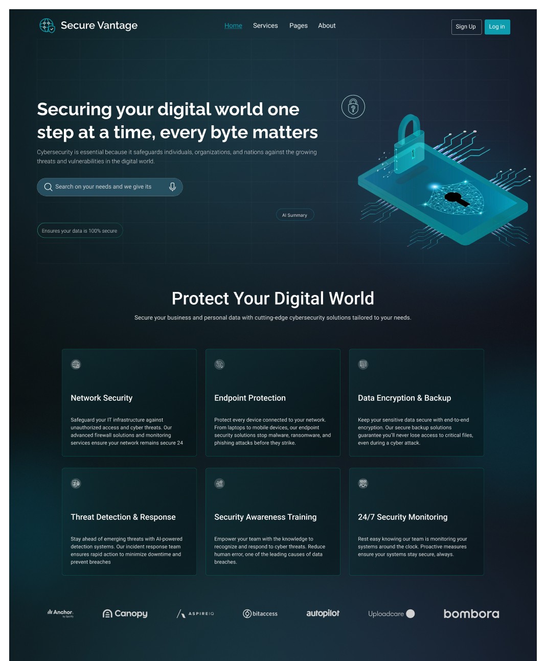 UI/UX for 3 key pages (Home, About/Services, Contact)